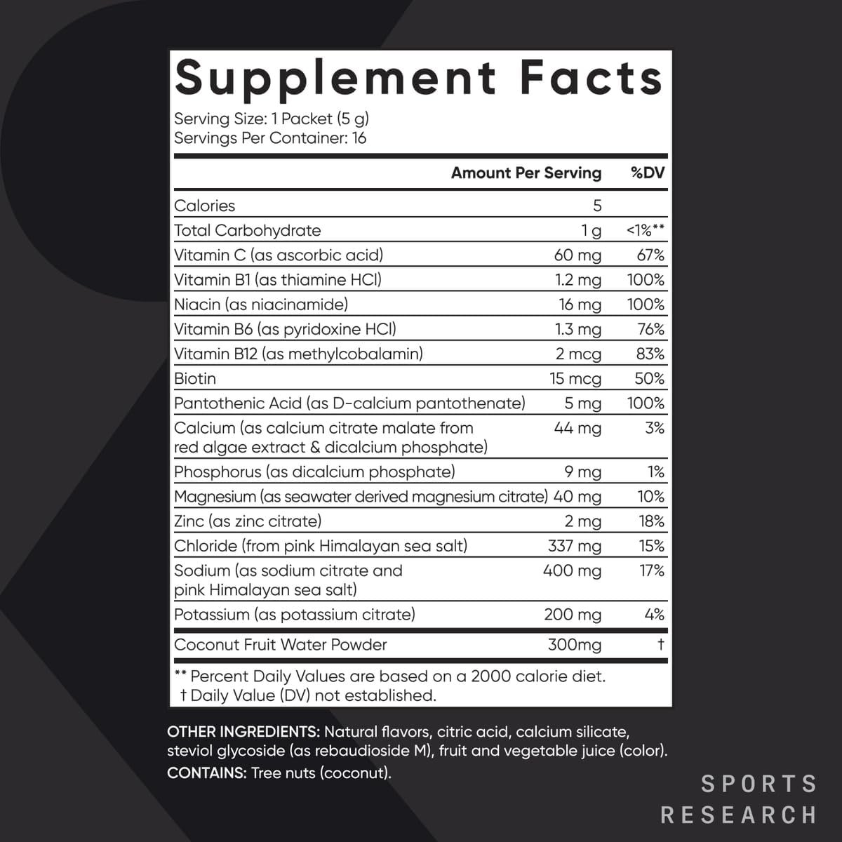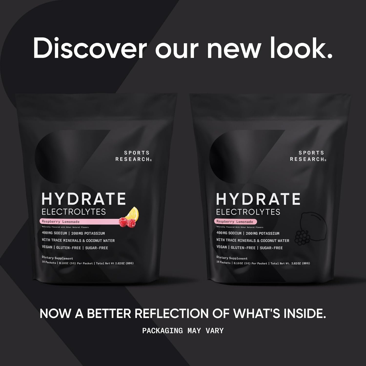Sports Research® Hydrate Electrolytes Powder Packets – Sugar-Free & Naturally Fl…